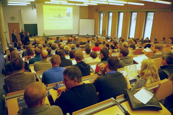 Das große Hörsaalgebäude der Fachrichtung Forstwissenschaften (TU-Dresden) - der Judeich-Bau - bot ausreichend Platz für die zahlreichen Zuhörer. Im Foyer des Gebäudes erwarteten die Experten ihres Faches mit einer interessanten Ausstellung die Tagungsgäste. Auch der sehr gut sortierte Bücherstand bot den Gästen wieder die Möglichkeit, aktuelle Fach- und Sachliteratur einzusehen und zu erwerben.